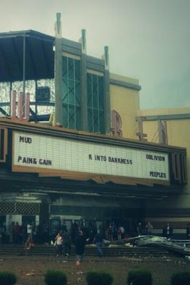 We had movie tickets for a 3:15pm showing at Warren Theaters… the exact theater in Moore, OK that was ground zero today. If you watched any local news, or the major news stations today, you would have seen this theater on the coverage many times. The photo on the right even shows the movie we were going to watch.